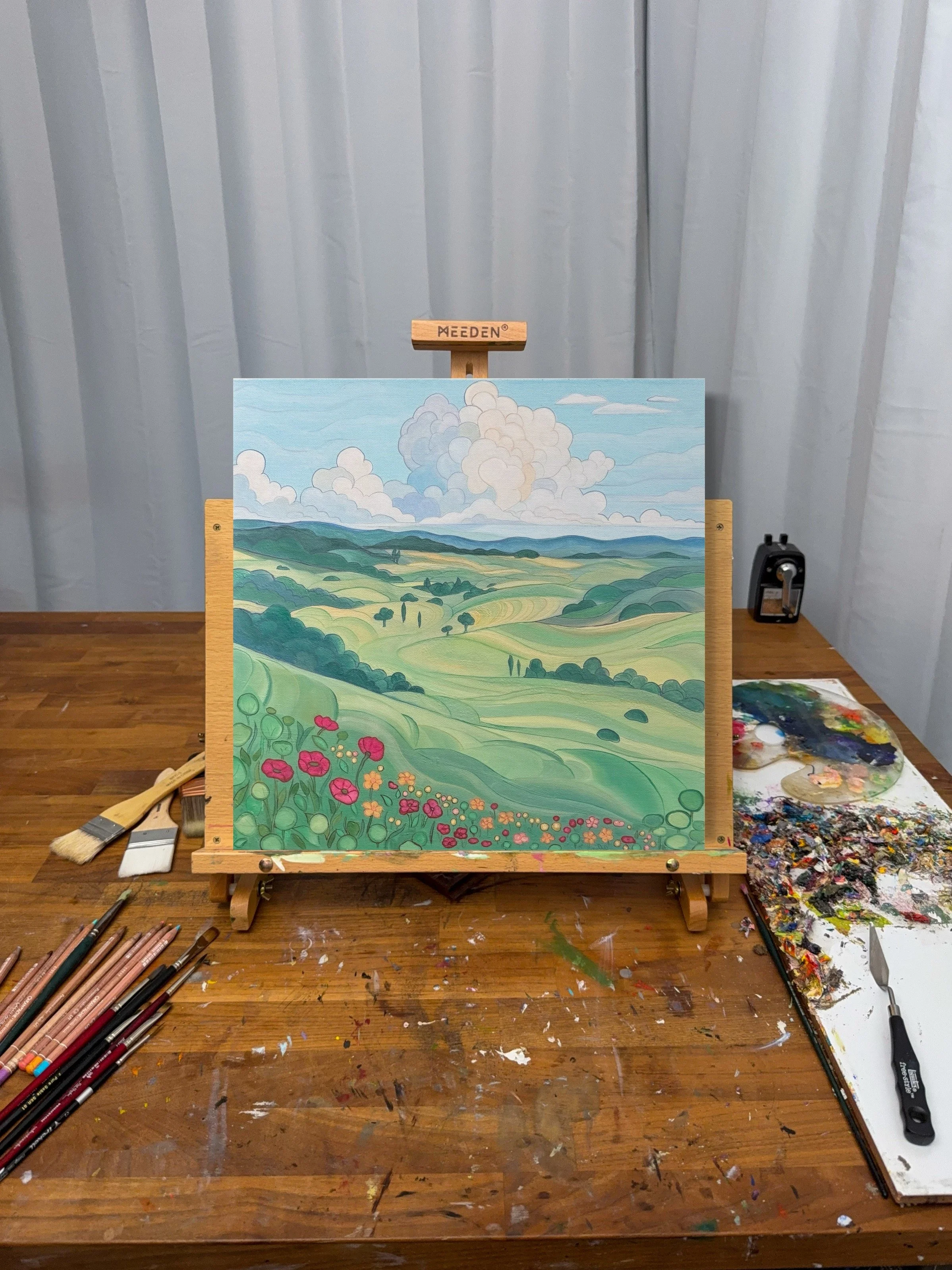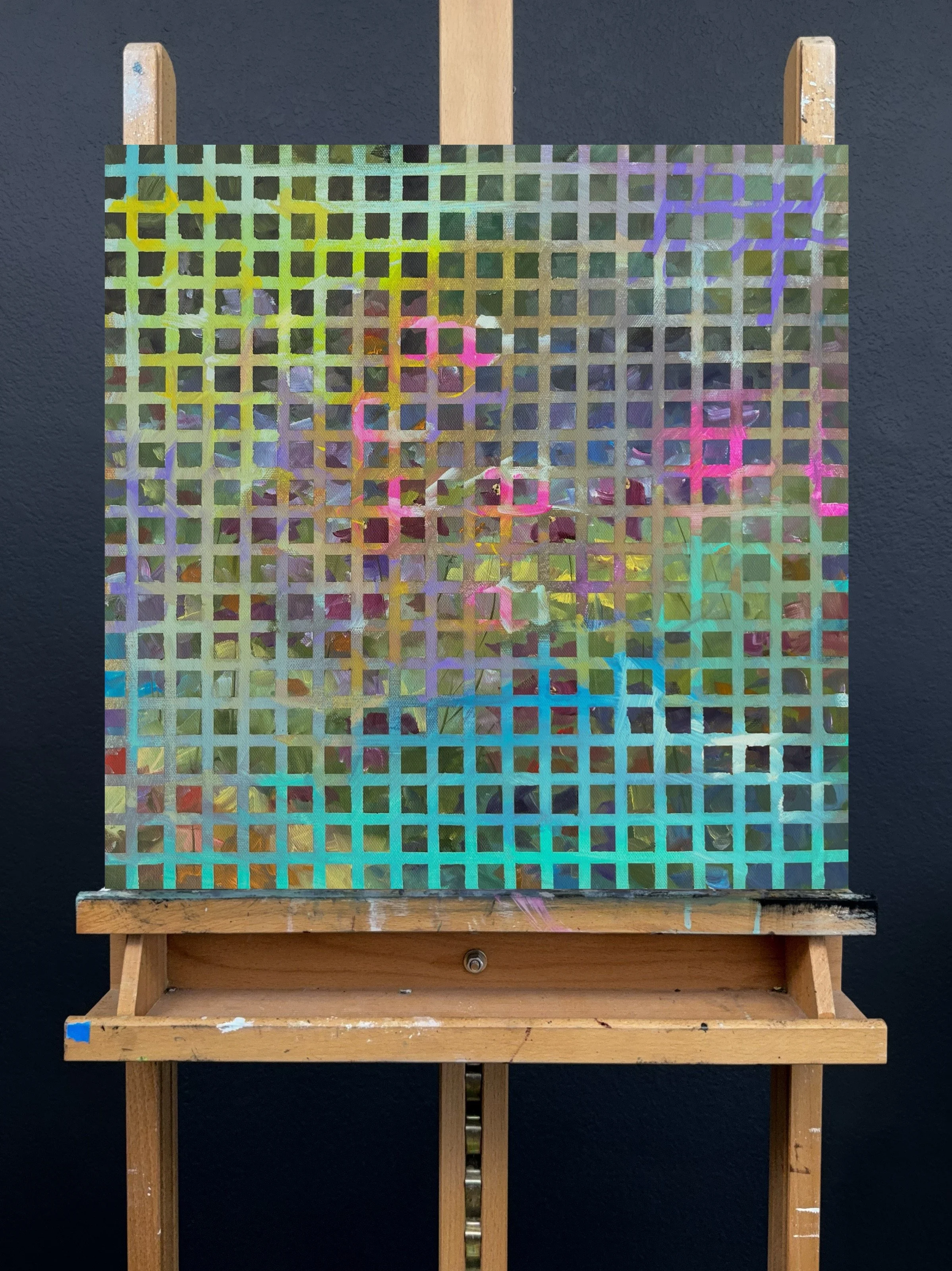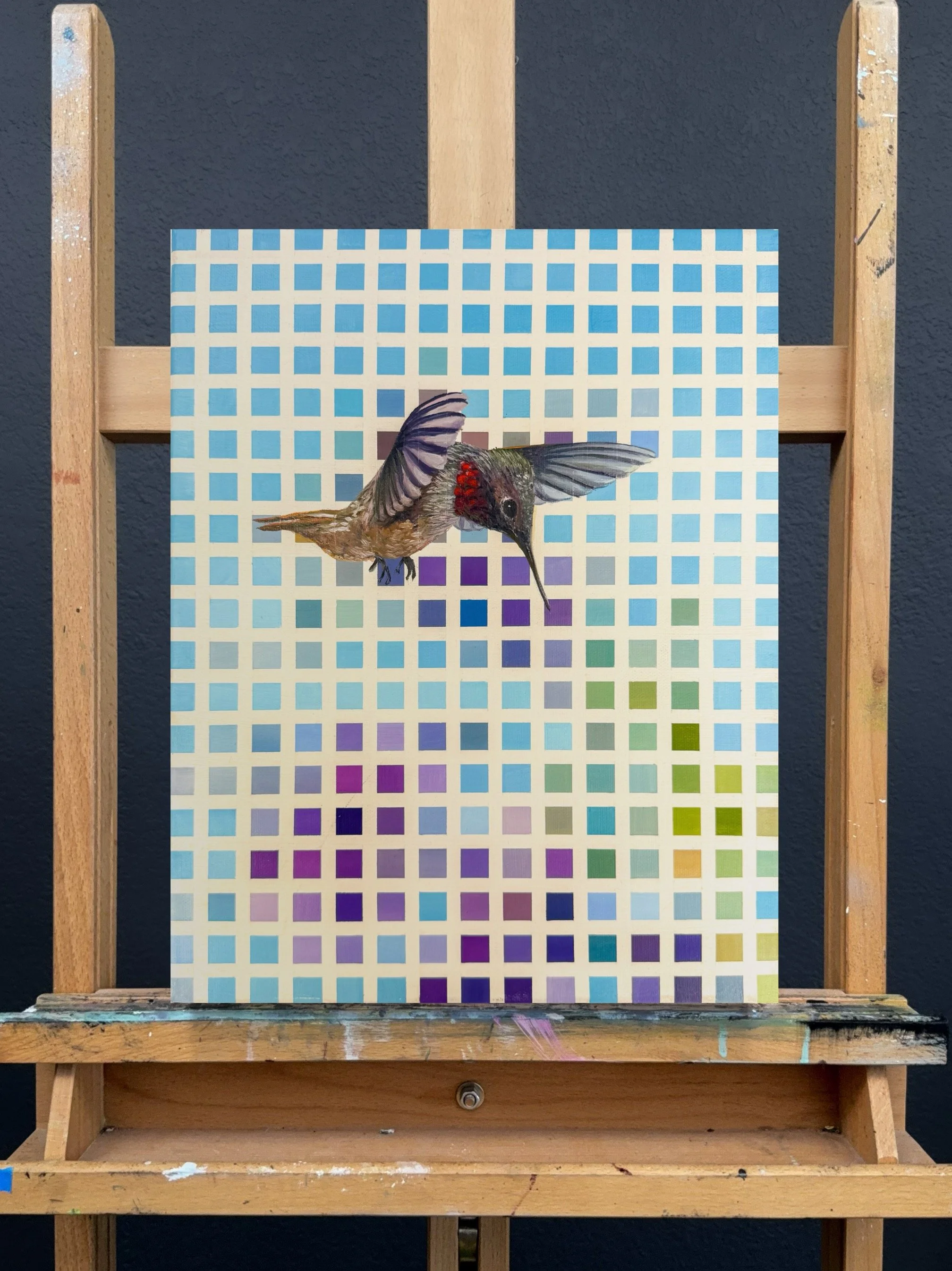 Rolling Hills (A Resurrection) | Oil on Canvas | 16 x 16 inches $2,600.00 There Are No Bananas | Mixed Media on Toned Paper | 9 x 12 inches $750.00 Plein Air - Spicewood Valley Trail, TX #2, | Oil on Canvas Panel | 4 x 6 inches $250.00 Plein Air - Spicewood Valley Trail, TX #1, | Oil on Canvas Panel | 4 x 6 inches $250.00 Looking Glass | Oil on Panel | 10 x 10 inches $2,600.00 Group Selfie | Oil on Panel | 10 x 10 inches $2,600.00 Every Skull Has a Smile (and this one is mine) | Oil on Panel | 10 x 10 inches $2,600.00 Grid Illusion Hummingbird | Oil on Canvas | 11 x 14 inches $1,800.00 Grid Illusion Cheeseburger | Oil on Canvas | 11 x 14 inches $1,200.00 Grid Illusion #1 | Mixed Media on Canvas | 16 x 16 inches $1,500.00 Grid Illusion #2 | Mixed Media on Canvas | 16 x 16 inches $1,500.00 Grid Illusion #3 | Mixed Media on Canvas | 16 x 16 inches $1,500.00